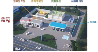 L'ammoniac se décompose efficacement en hydrogène et en azote sous l'action d'un catalyseur. Après désammoniation et purification, on obtient de l'hydrogène de haute pureté, garantissant une production sûre. L'utilisation d'ammoniac vert permet une production d'hydrogène décarbonée. L'hydrogène est mis sous pression, stocké et distribué avec précision aux véhicules via un panneau de commande séquentiel et un distributeur d'hydrogène, offrant ainsi une solution d'approvisionnement sur site efficace et sûre.